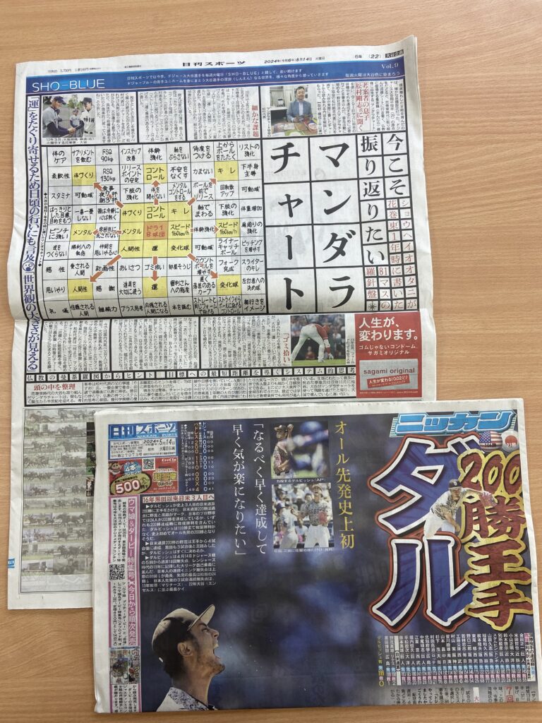 5/14(火)日刊スポーツ最終面ぶち抜きでマンダラチャートが記事になりました。何と私の顔写真も掲載!マンダラチャート開発から45年、開発者であり父でもある故松村寧雄も喜んでいるでしょう!