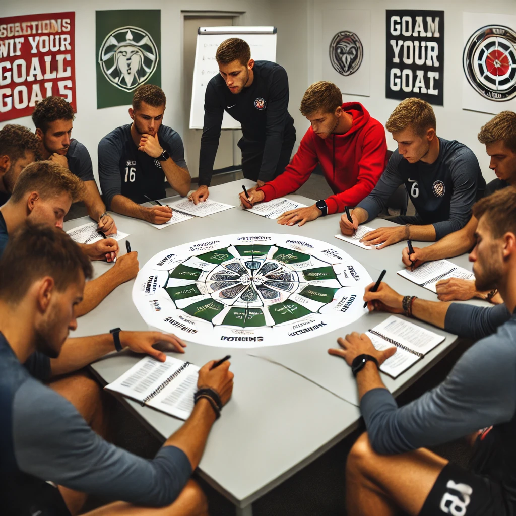 たとえば、「引退までにチームに貢献する」を中心に据え、周りに「フィジカル強化」「メンタル強化」「戦術理解」「リーダーシップ発揮」「後輩指導」「試合準備」「怪我予防」「コミュニケーション向上」などの具体的なテーマを配置します。
