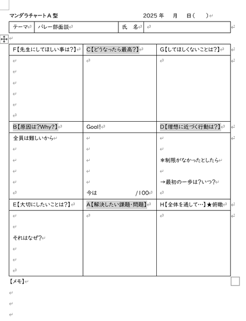 顧問の先生と2年生との関係がうまく噛み合っておらず、空気がギクシャクしているように感じていました。そんな中、顧問の先生との会話の中で「一度、2年生の声を聞いてみましょうか」と話が進み、私が2年生全員と個別面談をすることになりました。