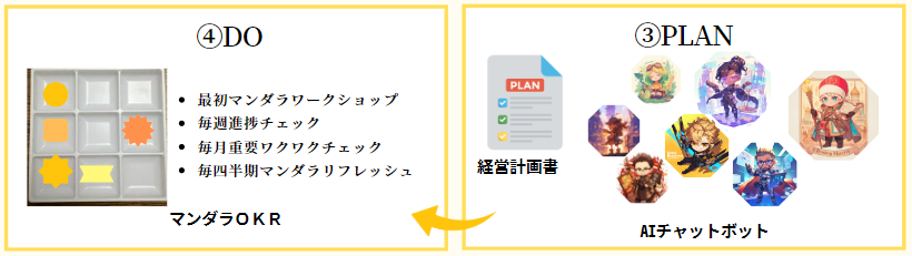 CAPDサイクルをまわすため、全社員一丸となった持続可能な計画をマンダラチャートにより提案することが可能です。